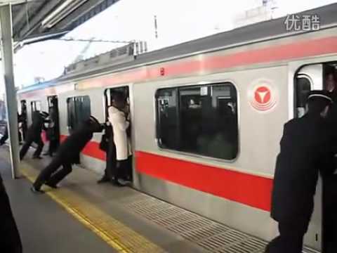 东京的是否工作人员,帮忙推人潮入车厢??